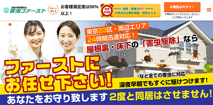 害虫ファースト 要見積 24時間365日 全国 工事保証あり(詳細は要確認) 害虫駆除専門