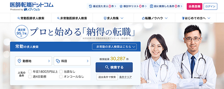 医師転職ドットコムは、公開および非公開求人が豊富な転職支援サービスです。全都道府県対応で、医療機関との連携体制も整っています。