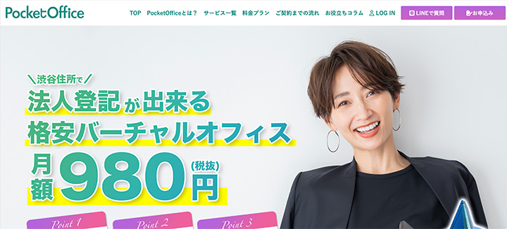 渋谷・銀座・横浜など人気エリアの住所が月額990円から利用可能で、法人登記や郵便転送にも対応しています。