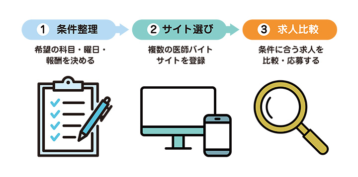 医師専門のバイトサイトを上手に使い分けることが近道です。