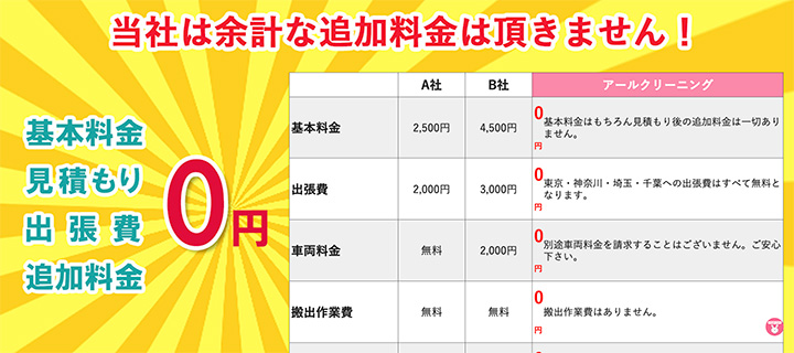 ▲アールクリーニング:余計な追加料金なし