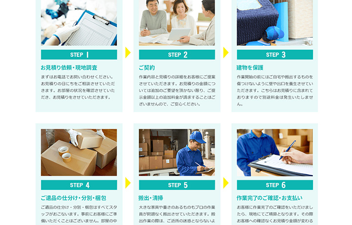 ▲遺品整理110番:サービスの流れ