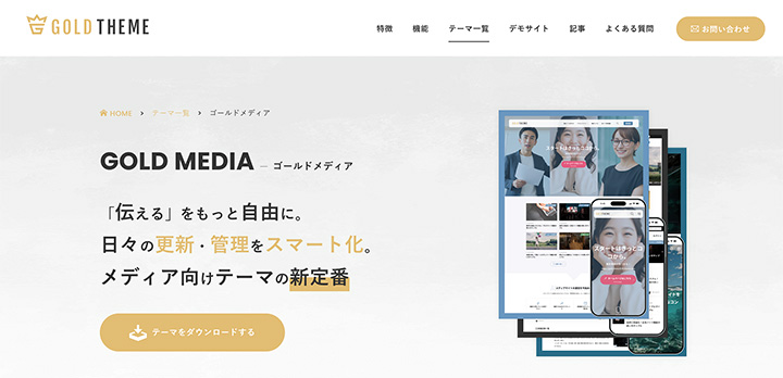 さらにプロのデザイナーがこだわりを持って作っているので、デザイン性が高いですね。このようなテーマを使うだけで、プロが作ったような仕上がりになります。