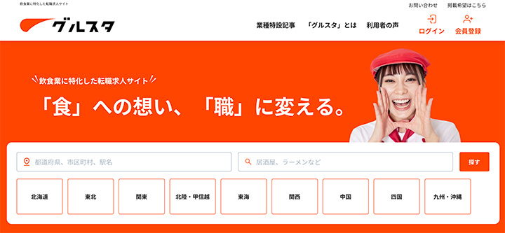 個性あふれる街場の飲食店から、多店舗展開を目指す飲食スタートアップ企業、大手の外食企業、老舗企業まで、幅広い飲食求人案件を掲載しています。