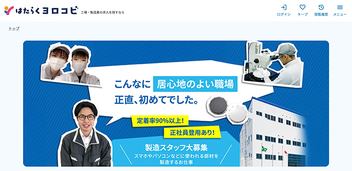 はたらくヨロコビは全国の製造業や軽作業、物流系に特化した求人を紹介しています。