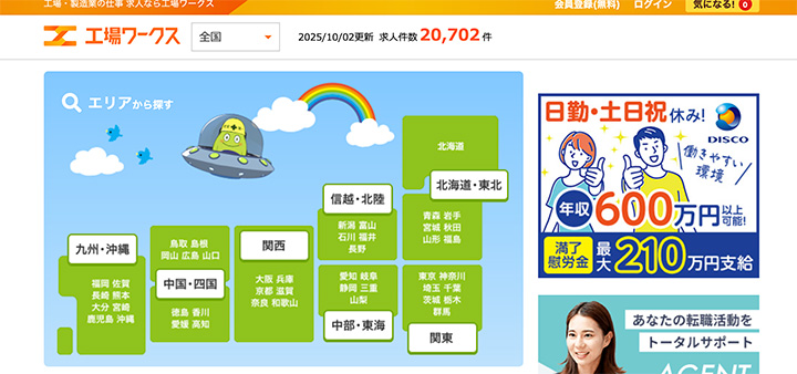 人気の理由は、製造業未経験の方にピッタリの軽作業から高収入の期間工、安定の正社員、寮費無料の住み込み・出稼ぎのお仕事まで幅広く求人を取り扱っているところ。