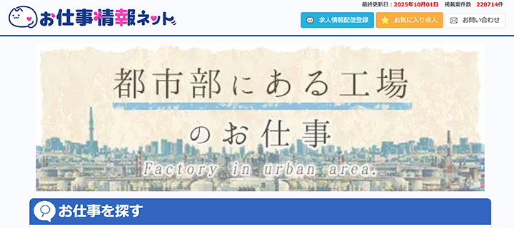 お仕事情報ネットは、製造業・工場系の求人が9万件を超える業界最大級の求人情報サイトで、製造業や工場系の求人を探されている方で最も多く利用されている求人情報サイトです。