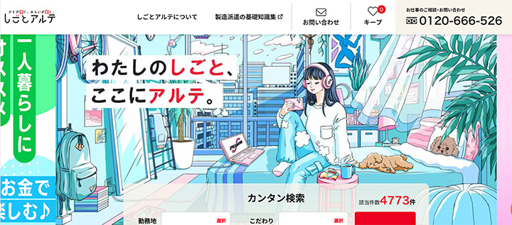 しごとアルテで紹介している製造業の仕事は、寮の充実度に目を奪われます。寮の家賃が無料の案件も100件以上ありますし、ワンルームですでに備品が完備されている案件も400件近くあります。
