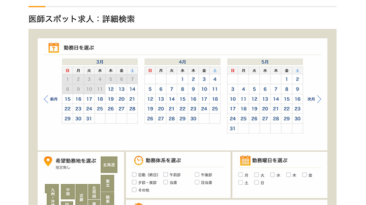 ▲医師バイトドットコム スポットバイト検索画面