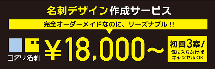 コクリ名刺は、完全オーダーメイドなのに、料金は18,000円(片面)とリーズナブルです。